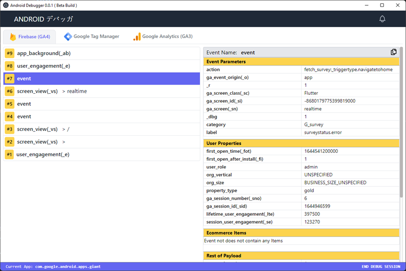 This new tool will allow anyone to easily debug any Firebase (GA4) , GTM ( Limited Info ) and Universal Analytics ( GA3 ) implementations on any Android App.