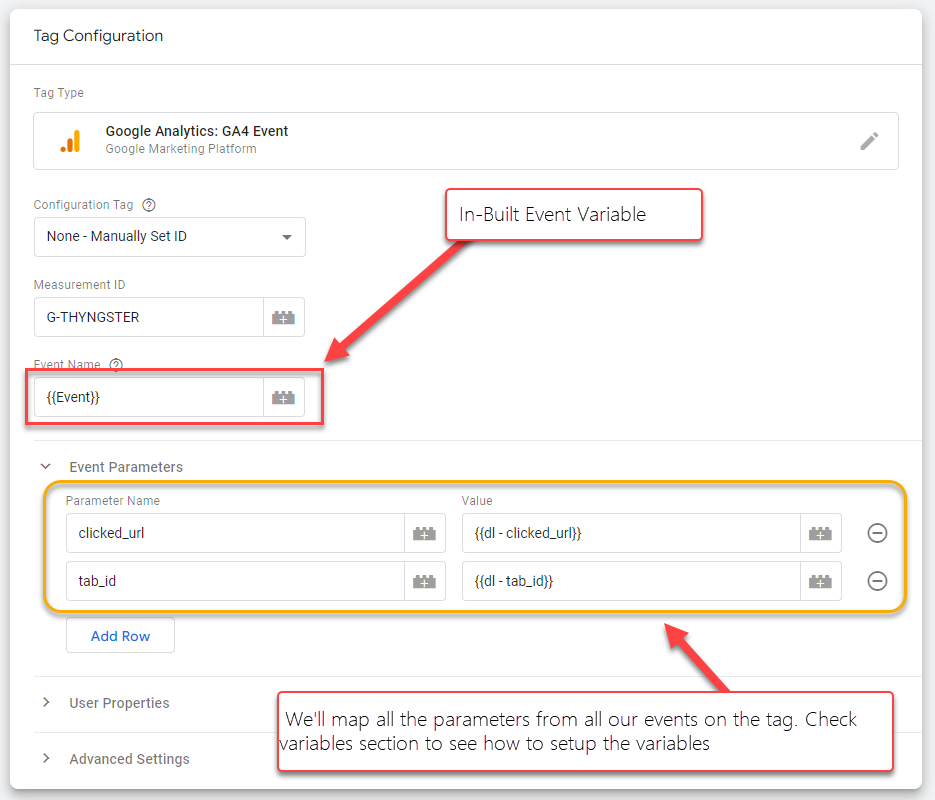 For now, that's all we'll be doing, before mapping up the event parameters and user properties , we will learn how would need to set up the variables to relay on the v1 version.
