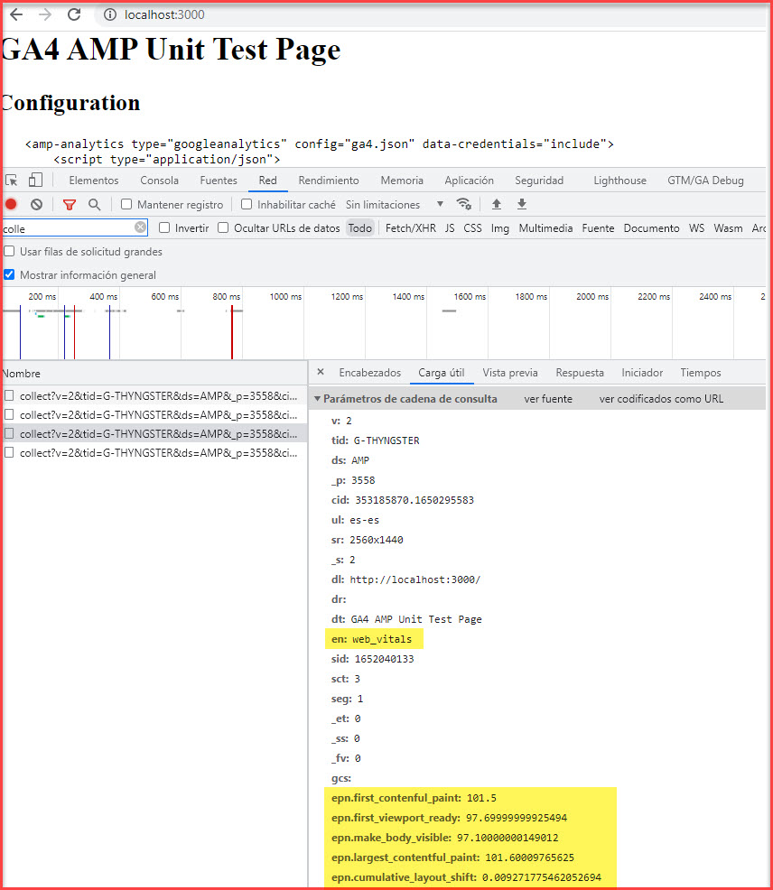 There is some data provided by AMP that is available and that can provide some cool events, in this first release I've added two events to track our page loading speed.